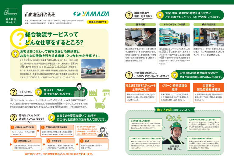 この度、滋賀県内の中学生のキャリア教育用教材として配布される『お仕事ブック』滋賀県2022年度版に当社が掲載されました。 中学生の皆さんが、物流の仕組みや大切さを少しでも知ってもらえれば嬉しく思います。